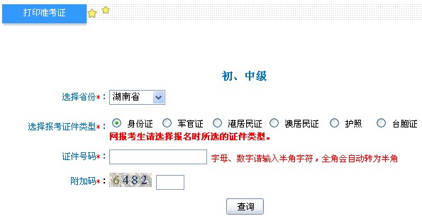 湖南省2013年中級(jí)會(huì)計(jì)職稱(chēng)考試準(zhǔn)考證打印入口