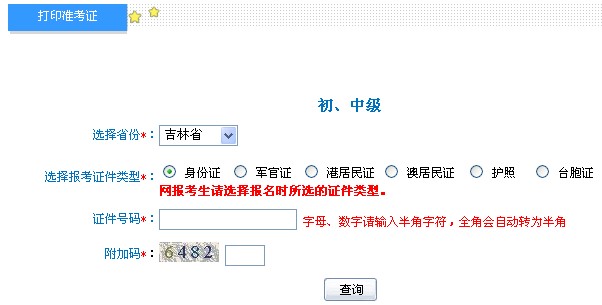 吉林省2013年中級會計職稱考試準(zhǔn)考證打印入口