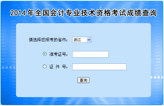 浙江2014年中級會計職稱考試成績查詢入口