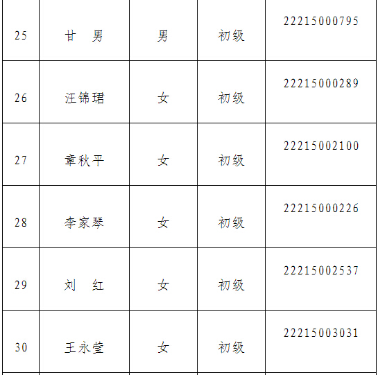 根據(jù)省人社廳《關(guān)于公布2014年度會(huì)計(jì)專業(yè)技術(shù)資格考試合格人員名單的通知》(皖人社秘〔2015〕46號(hào))精神,現(xiàn)將2014年度會(huì)計(jì)專業(yè)技術(shù)資格考試(當(dāng)涂地區(qū))合格人員名單公布于后。
