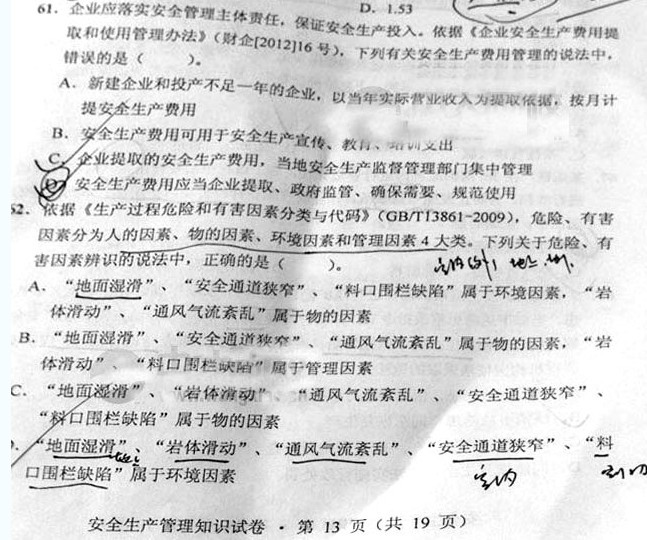 2013年注冊(cè)安全工程師管理知識(shí)試題(完整版)