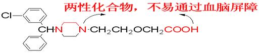 選擇性作用于H1受體,作用強而持久(10 mg/d),對M和5-HT受體的作用極小。由于含有易離子化的羧基,為非鎮(zhèn)靜類H1受體拮抗劑。
