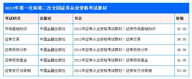 2013年第一次和第二次全國證券從業(yè)資格考試仍使用2012年版考試大綱及教材,第三次和第四次全國證券從業(yè)資格考試使用2013年版考試大綱及教材。(2013版考試教材和考試大綱尚未公布)