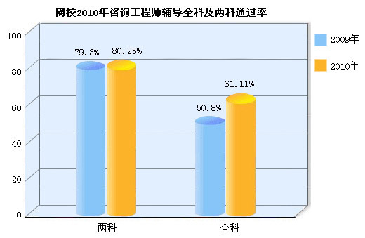 環(huán)球網(wǎng)校2010年咨詢工程師輔導(dǎo)兩科通過(guò)率、全科通過(guò)率較2009年分別提高了0.95%和10.31%。