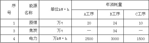 注:①1kg標準煤熱值=7000kcal。②本項目使用的各類能源平均低位發(fā)熱量:1kg原煤熱值=5000kcal;1kg焦炭熱值=6800kcal;1kW?h電=2500kcal(按火力發(fā)電煤耗計算)。