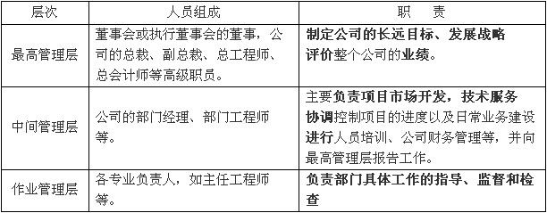 工程咨詢單位的管理層次分為三層,他們各司其責(zé),具體見表3-1。