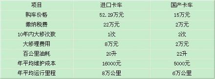 進(jìn)口與國(guó)產(chǎn)卡車主要經(jīng)濟(jì)技術(shù)指標(biāo)對(duì)照表
