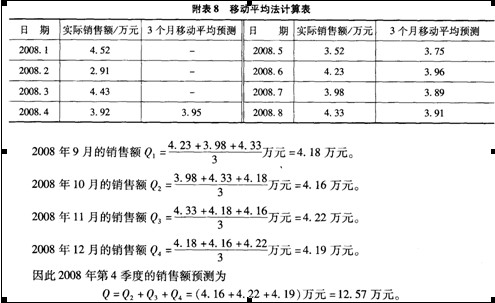 1.當(dāng)n=3時的移動平均法計算見附表8。