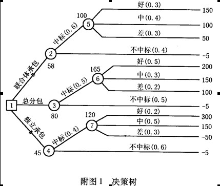 (3)選擇機會點期望值最大的方案,即總分包方案作為投標(biāo)方案。