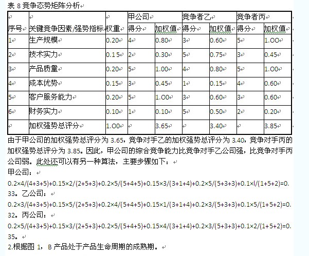 1.甲公司的競爭態(tài)勢矩陣分析,見表8。
