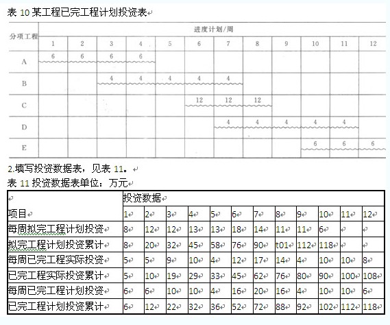 1.各分項工程的已完工程計劃投資表示線和每周已完工程計劃投資額,見表10。