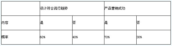 表2設(shè)計符合流行趨勢及產(chǎn)品營銷成功的概率預(yù)測