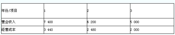項目投資發(fā)生在第1年年初,當(dāng)年投產(chǎn)運營。項目的壽命期3年,預(yù)定營業(yè)收入和經(jīng)營成