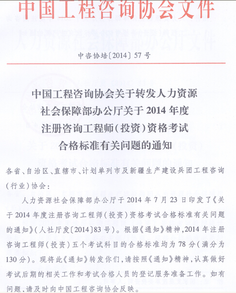2014年咨詢工程師執(zhí)業(yè)資格考試合格標(biāo)準(zhǔn)有關(guān)問題的通知