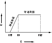干燥過程分成兩階段,恒速階段(平行于橫軸直線)和降速階段(斜向下線)。在恒速階段,干燥速率與物料濕含量無關(guān)。而在降速階段,干燥速率近似地與物料濕含量成正比。物料濕含量大于C0時(shí),干燥過程屬于恒速階段,當(dāng)物料濕含量小于C0時(shí),干燥過程屬于降速階段。