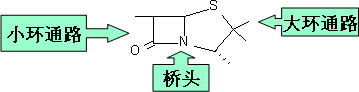 以4 一 硫雜 -1 一氮雜雙環(huán) [3,2,0]庚烷為母體,在3位連有二甲基,6位連有2-苯乙酰氨基,7位氧代,2位連有甲酸鈉。提示:此庚烷由雙環(huán)組成,除共用邊的兩個(gè)原子外,五元環(huán)還有三個(gè)原子,四元環(huán)還有兩個(gè)原子,故稱為雙環(huán)[3,2,0]庚烷。
