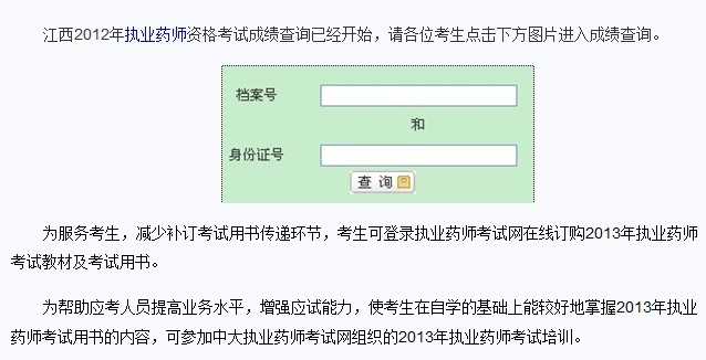 2012年江西藥師考試成績查詢